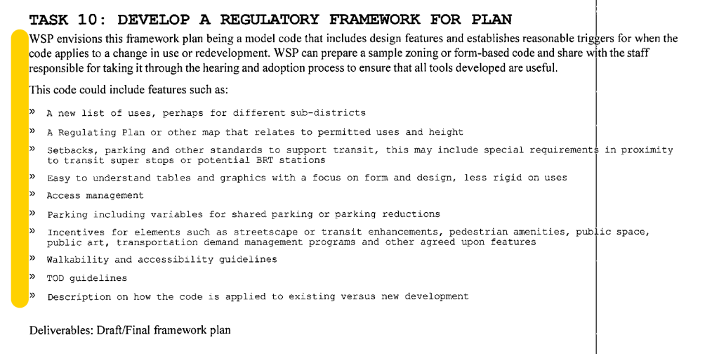 We feel that all zone change requests in the area of our neighborhood along the corridor would be premature until this study is complete. A regulatory framework including a “corridor overlay” that could be adopted as a component of the current Comprehensive Plan and “design guidelines and standards” for what development along the corridor should look like are expected products of this study. Also note potential form-based code features listed under Task 10 in the Amended Scope of Work below, and how those might impact current land use decisions.